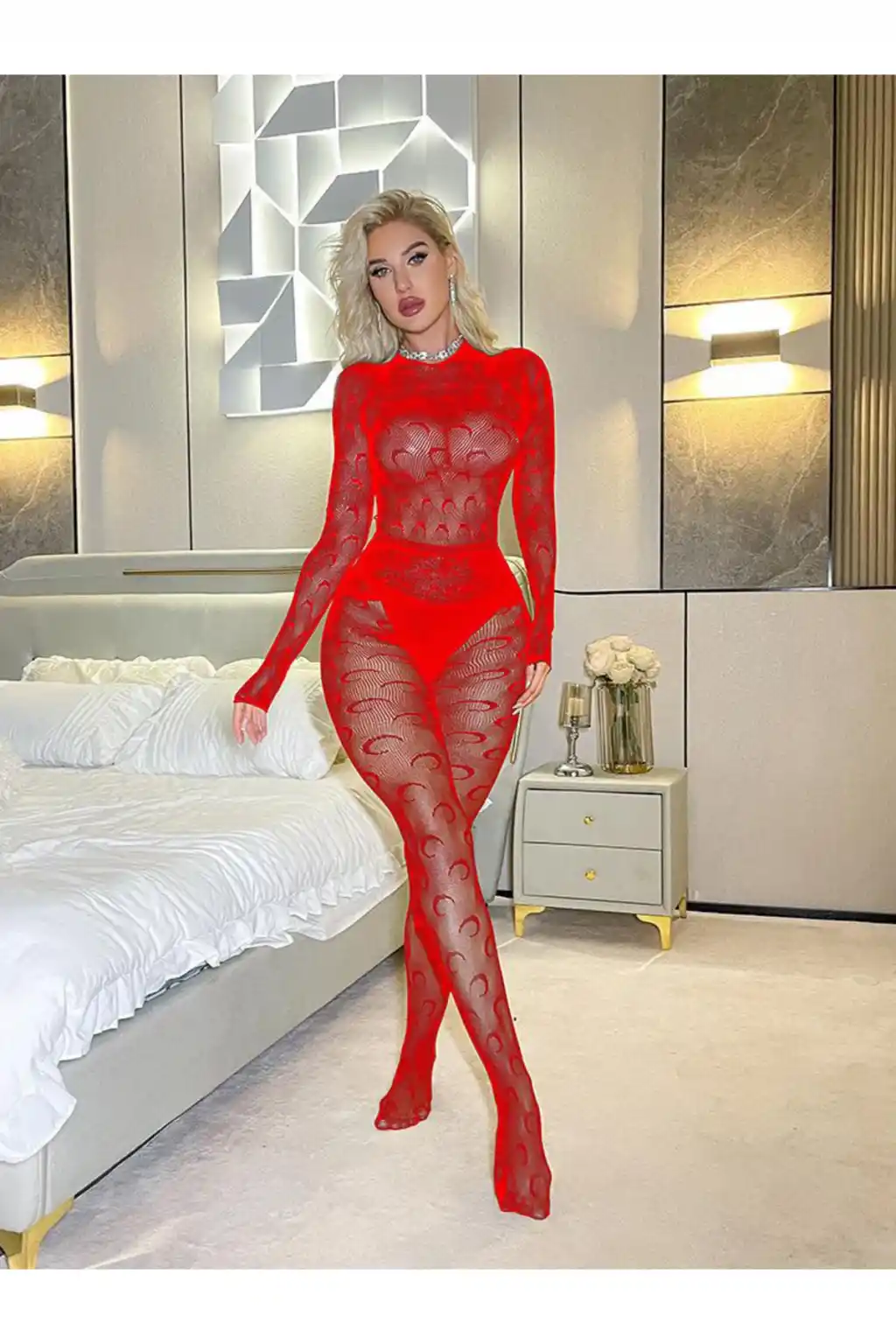 Kadın Seksi Fileli Fantezi Büük Bedenlere Uygun Utlra Esnek Vücut Çorabı..